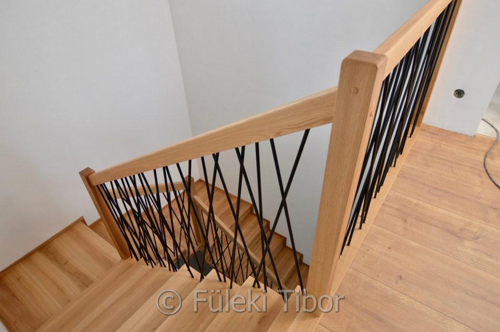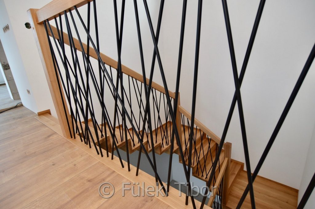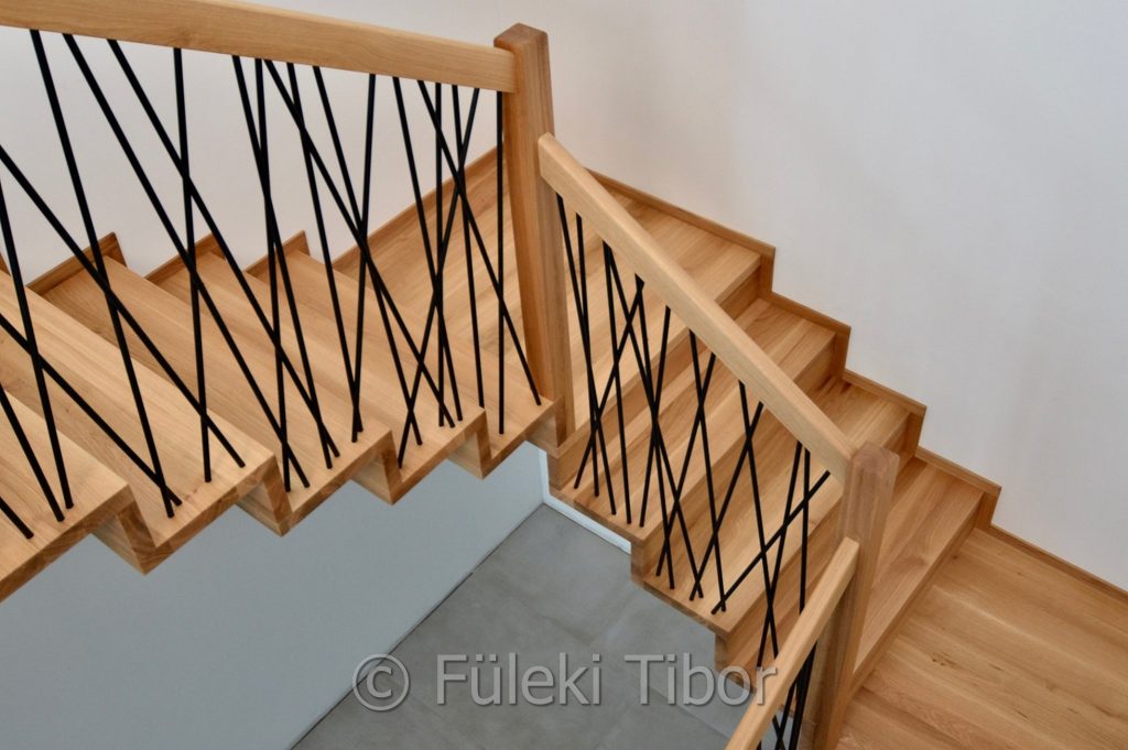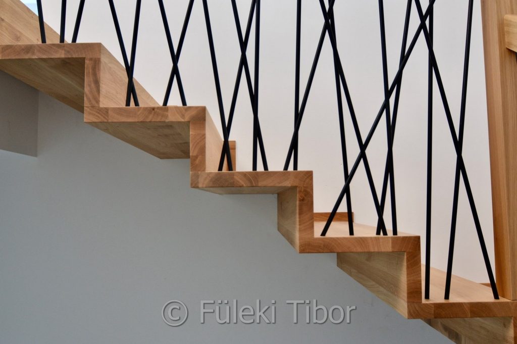 Az egyszerű lépcső formáját feldobhatjuk különleges egyedi korláttal. A lépcső számára kialakított hely elég nagy volt, így pihenők is elfértek az adott helyen.